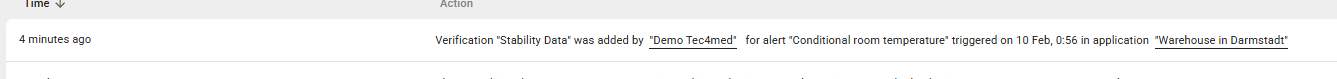 4. Additionally, you can see the confirmed alert notification in the audit trail: